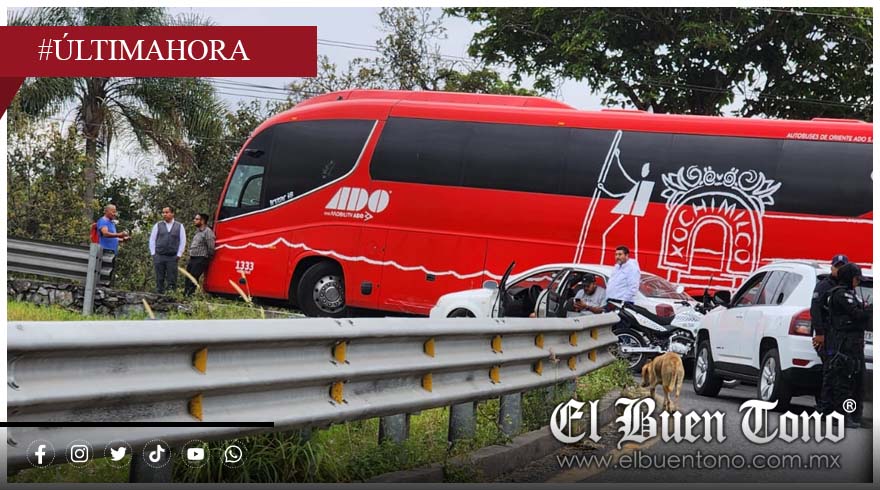 Orizaba.– Daños materiales y afectaciones a la vialidad provocó un autobús de la línea ADO que chocó contra un automóvil en el puente que comunica a Jalapilla.