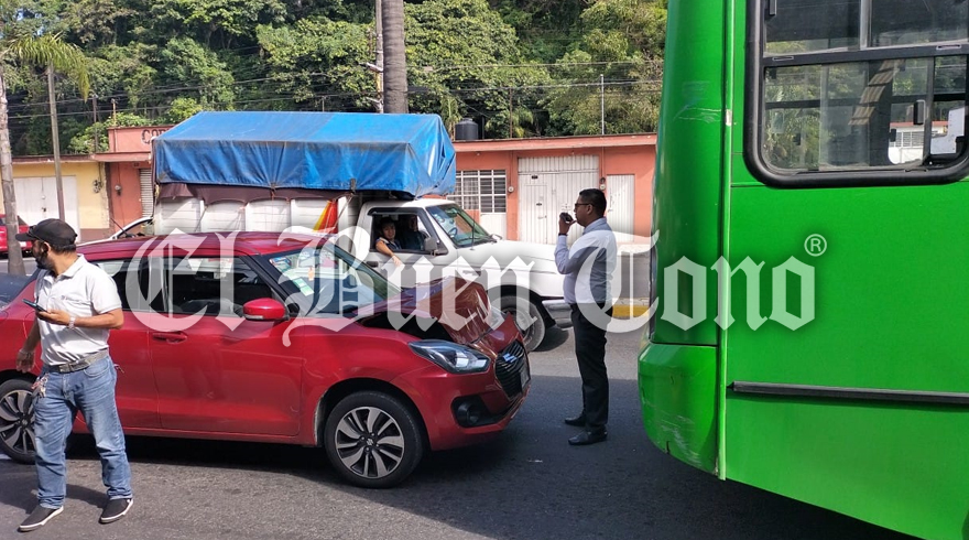 Orizaba.- Daños materiales valuados en varias miles de pesos pero sin ninguna persona herida de gravedad, fue el saldo que dejó un choque entre un autobús de la línea Internacional y un vehículo particular sobre la calle de la Poniente 7, justo una cuadra adelante de los Arcos que dividen Río Blanco de Orizaba.