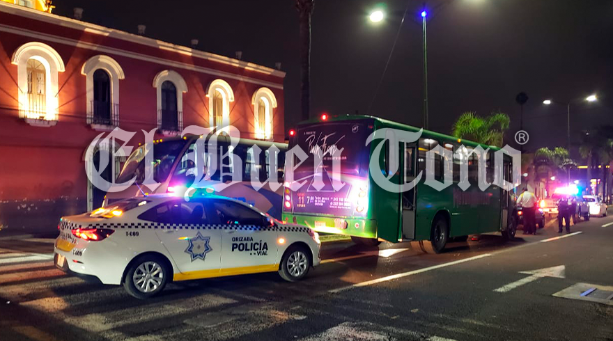 Orizaba, Ver.- La noche del viernes 11 de octubre se registró un choque por alcance entre un autobús de pasajeros y un auto particular en la avenida Oriente 6 entre Sur 13 y Sur 15 de la colonia Centro de Orizaba.