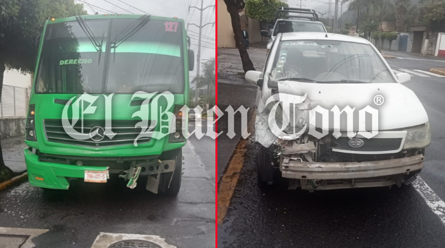 Ixtaczoquitlán, Ver.- La imprudencia de un chofer de un autobús de pasajeros provocó el choque contra un automóvil compacto, y paralizó la circulación vehicular sobre el bulevar Fernando Gutiérrez Barrios en el municipio de Ixtaczoquitlán.