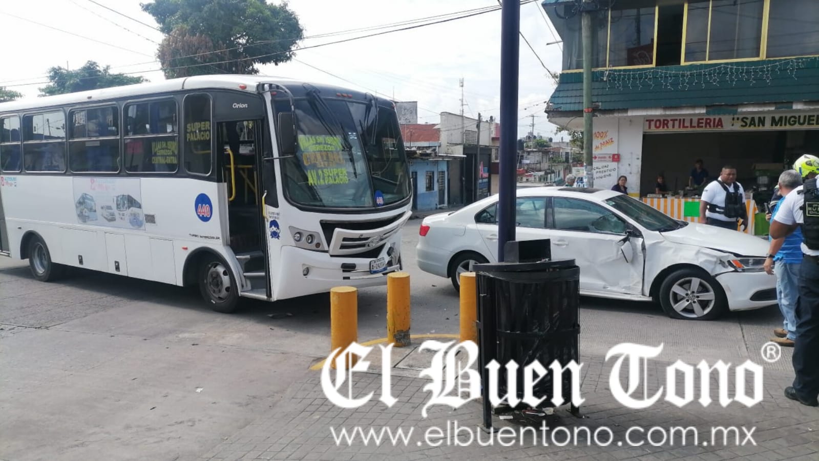 Córdoba, Veracruz. Un autobús de la línea 8 de marzo y un vehículo Volkswagen tipo Jetta chocaron esta mañana en la avenida 6 y calle 21 debido a la falta de precaución de uno de los conductores.