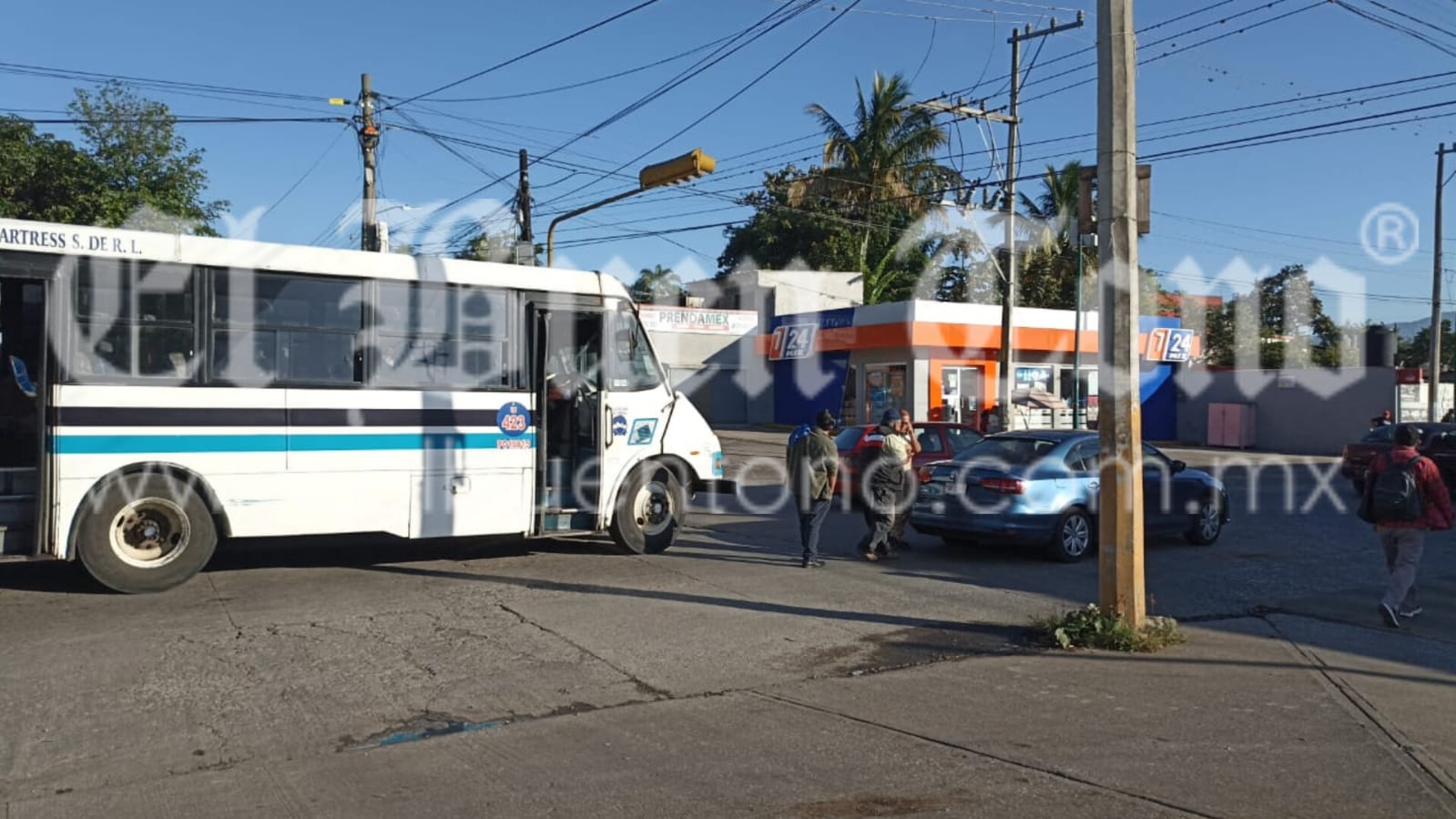 Córdoba, Veracruz – La falta de precaución al conducir provocó que esta mañana un autobús de pasajeros chocara contra un vehículo particular en la avenida central y la calle 8 de la colonia La Luz Francisco I. Madero, causando únicamente daños materiales. Elementos policiales llegaron para supervisar la circulación y esperar la llegada de peritos de tránsito municipal para tomar conocimiento, ordenar el retiro de las unidades a la brevedad posible y llevar a cabo la asignación de responsabilidades.