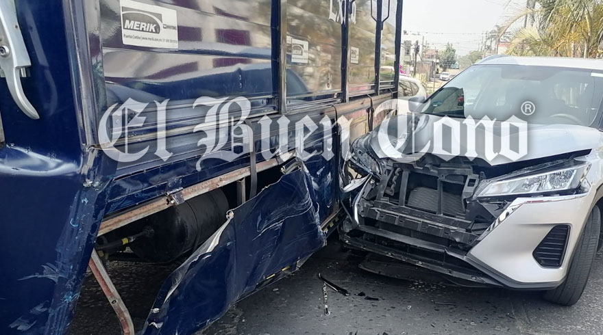 Fortín. – Una camioneta quedó dañada de la parte frontal, al chocar contra un camión de la empresa Corona, cuando circulaban en calles del fraccionamiento Los Pinos.