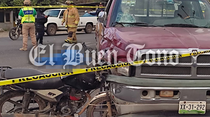 Córdoba.- Un hombre sin vida y una mujer de la tercera edad gravemente herida, fue el resultado de una colisión entre una motocicleta y una camioneta en la desviación Omealca la tarde de este viernes. El percance se registró cuando el conductor de la camioneta Ram hizo corte de circulación, lo que provocó que se impactaran dos motociclistas donde quedó el conductor sin vida en el lugar, su acompañante fue trasladada por paramédicos de Samuv a la clínica del ISSSTE, donde se debate entre la vida y la muerte. De los hechos tomó conocimiento la Guardia Nacional división carreteras. El presunto responsable conductor de la camioneta fue puesto a disposición de la Fiscalía Regional para la responsabilidad que le resulte.
