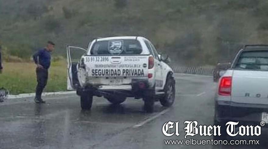 Maltrata. – Una camioneta de seguridad privada de “Tiburón Estrategia y Logística” quedó desbaratada en el carril de subida de la autopista Orizaba – Puebla. Fue impactada por un vehículo, lo que la hizo salir proyectada hacia un tráiler; ambos vehículos se dieron a la fuga.