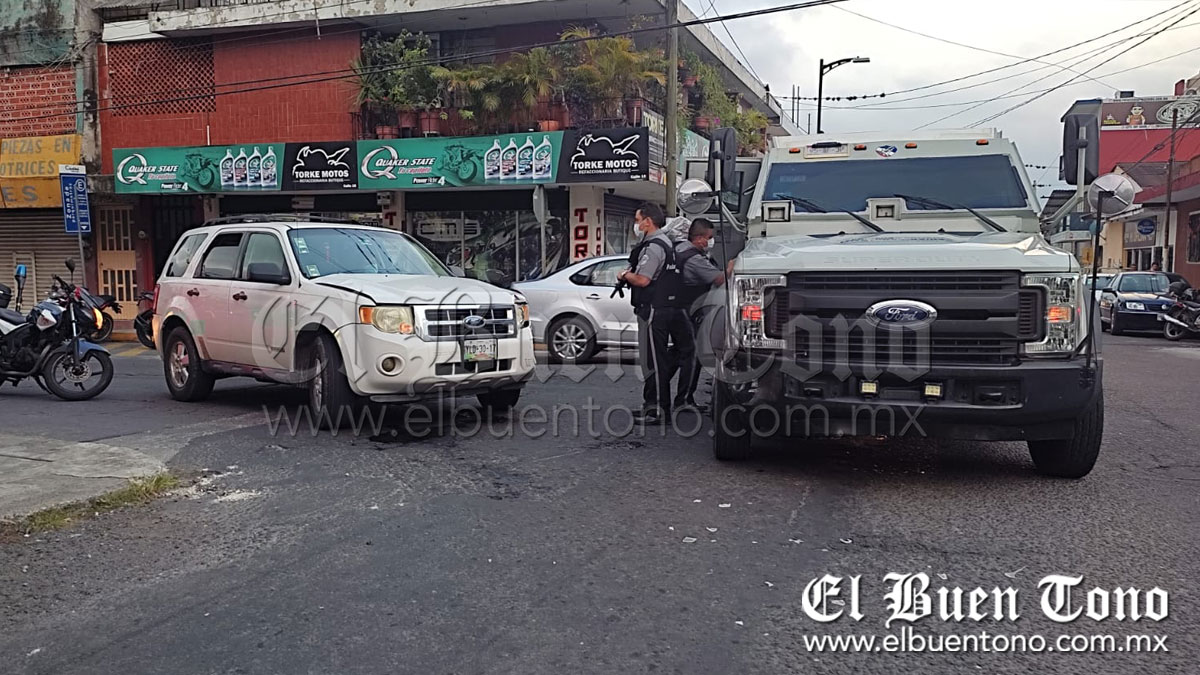Córdoba,Ver.-Daños materiales y obstrucción del flujo vehicular fue el resultado de un accidente la tarde de este jueves  entre una  camioneta de valores y  un automóvil particular, el percance se registró en la avenida 5 y calle 15 luego de que la conductora de la unidad particular no hiciera alto al llegar a la avenida.