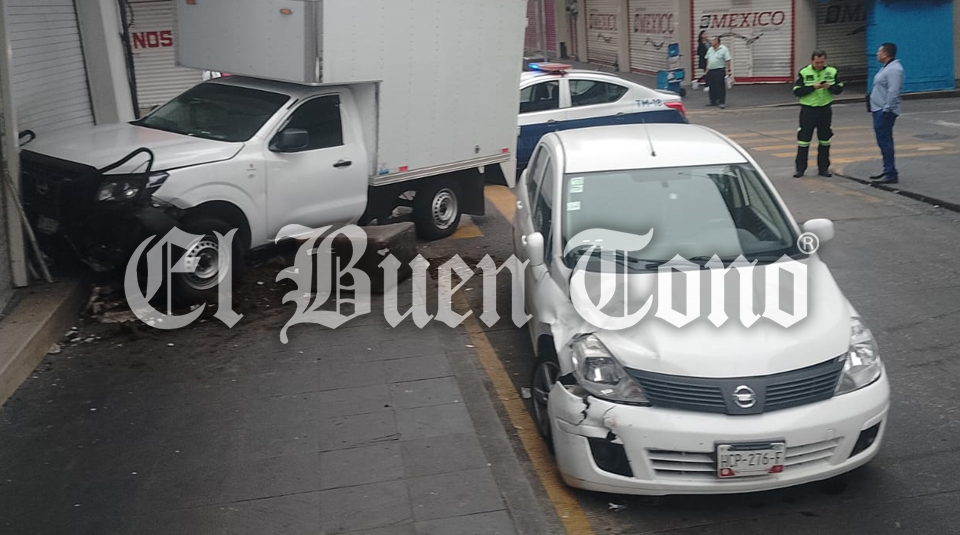 Al impacto, la camioneta que circulaba por la calle, derribó un macetero y se impactó contra un local comercial.
