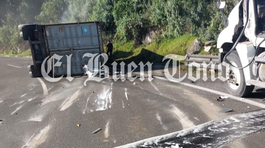 A la altura del tramo carretero Magueyes-San José Cuyachapa, el chofer no redujo la velocidad al tomar la curva y le “voló” la portezuela del lado izquierdo a otro camión marca Freightliner color blanco, matrícula 28-AD-6N del SPF, propiedad de la empresa MAERSK.