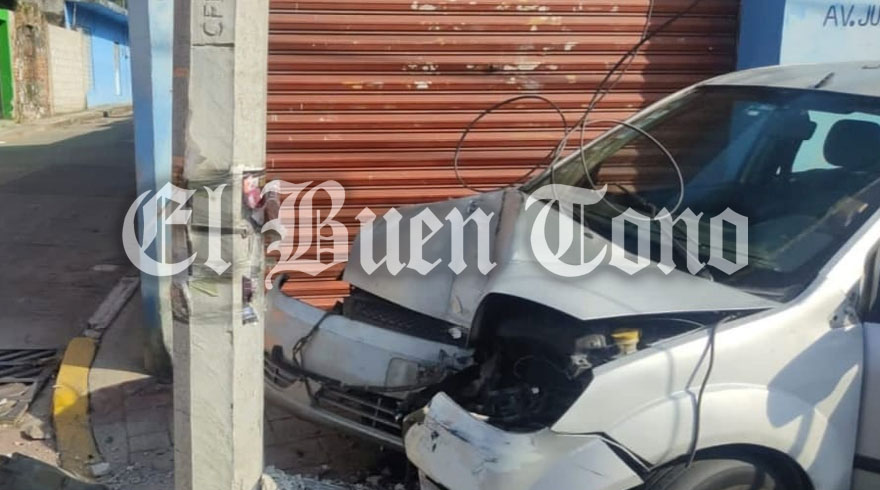 Nogales.- La mañana de hoy se registró un aparatoso accidente sobre el bulevar de la avenida Benito Juárez, luego de que un empleado que viajaba a bordo de su automóvil, perdió el control del volante y chocó contra un poste de concreto de cableado eléctrico de la CFE.