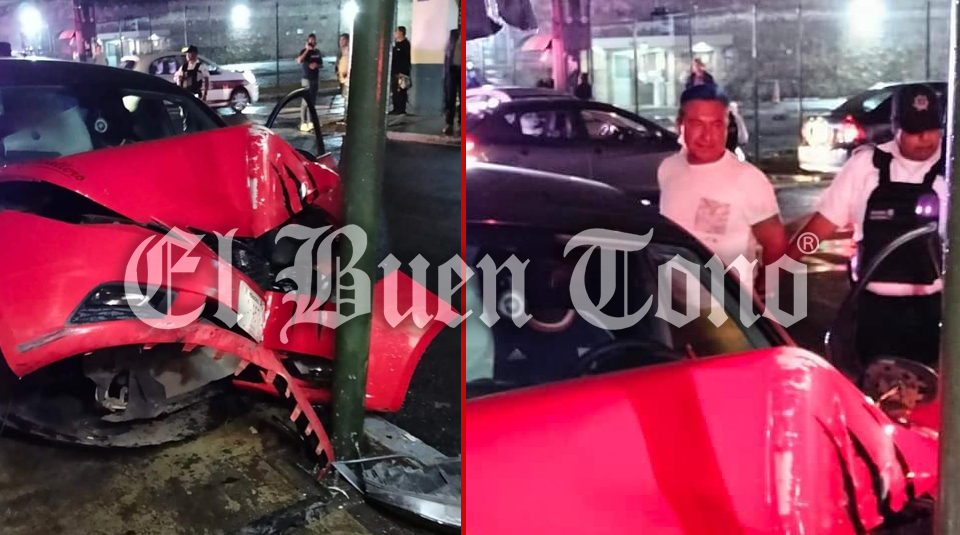 El exceso de velocidad fue lo que provocó que el conductor perdiera el control, subiera a la banqueta y se impactara contra el poste, durante la noche de ayer.