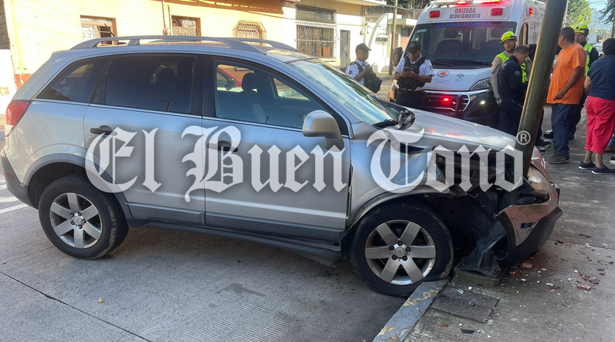 Orizaba, Ver.- Un alocado conductor se fue a estrellar contra un poste de alumbrado público por manejar a exceso de velocidad y por su falta de pericia, accidente ocurrido en avenida Crí-Crí entre Poniente 8 y Poniente 2 de la colonia Barrio Alameda.