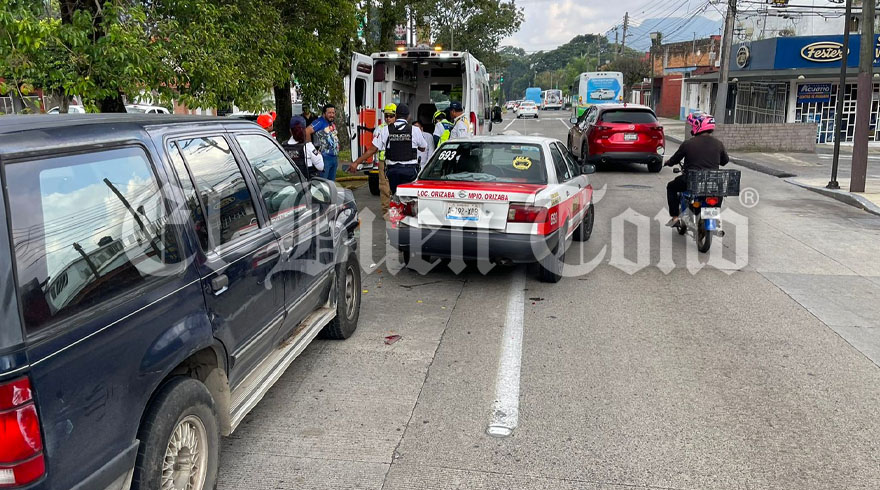 Orizaba, Ver.- El choque entre una camioneta y un taxi de Orizaba, movilizó a los cuerpos de seguridad y paramédicos de Protección Civil, por fortuna no se reportaron personas lesionadas, únicamente daños materiales.