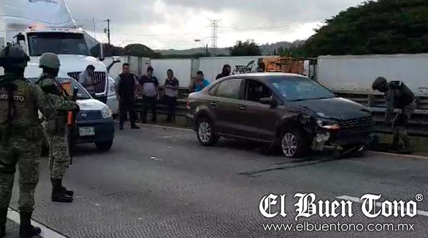 Ixtaczoquitlán.- El conductor de un auto particular perdió el control y chocó contra una camioneta, para después rebotar contra el muro metálico que se ubica en el kilómetro 281, a la altura del lugar conocido como La Joyita.