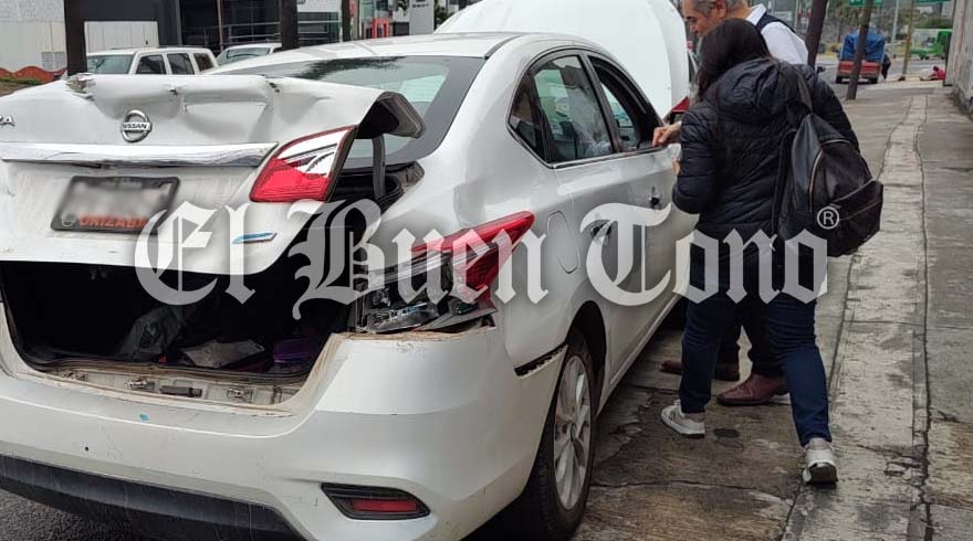 Orizaba, Ver.- Por no medir la distancia y no respetar el semáforo, un autobús de pasajeros se impactó por alcance contra un auto compacto en el cruce de la avenida Oriente 6 y Sur 57 de la colonia Rafael Alvarado de Orizaba. Resulta que el conductor del camión de pasajeros de la línea Servicios Metropolitanos, marcado con el número económico 264, no respetó el alto total del semáforo ubicado frente a la Facultad de Ciencias Químicas y chocó contra la parte trasera de un Nissan Sentra.
