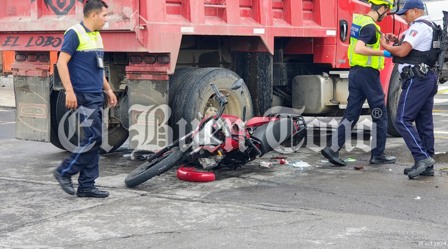Orizaba, Ver.- Dos personas lesionadas y un menor bajo resguardo de la Policía Local dejó el choque entre un volteo y una motocicleta en el cruce de la calle de Sur 15 y avenida Paseo Las Palmas de la colonia Francisco Ferrer Guardia de Orizaba.