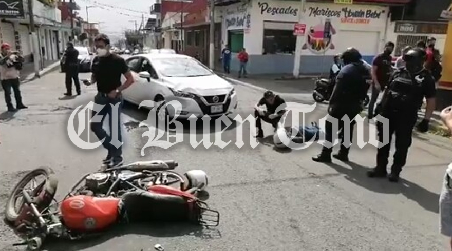 Córdoba.- Con múltiples lesiones en el cuerpo, resultó la mañana de este domingo un motociclista al chocar contra un vehículo particular, debido a que el motorista al no respetar la preferencia vehicular justo en el cruce de la avenida 5 con calle 15 de la colonia Centro teniendo que ser atendido por paramédicos de Cruz Roja y enviado a un hospital, mientras que autoridades de Tránsito llegaron para tomar conocimiento del choque.