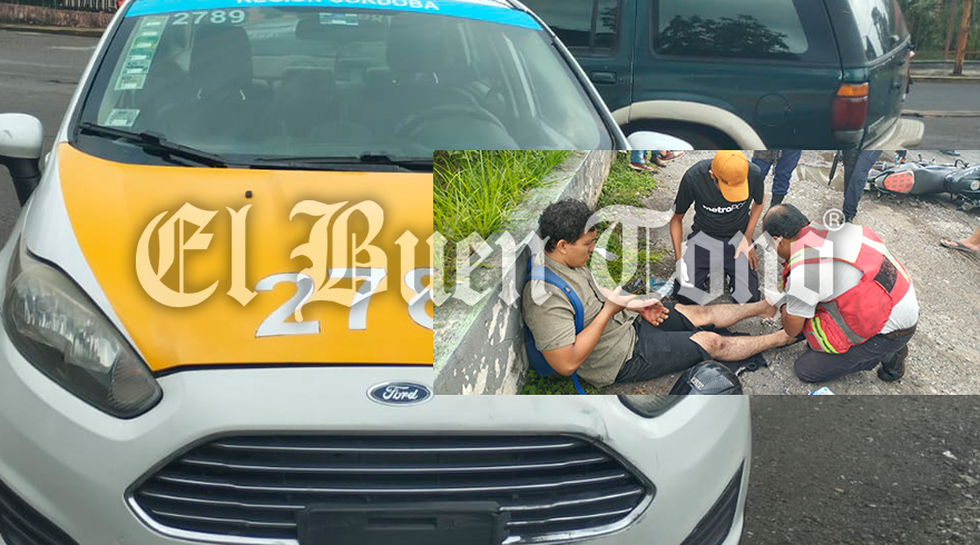 Fortín.- Un motociclista fue atendido por paramédicos de la corporación Rescatistas Primeros Respondientes de Fortín, al chocar contra un taxi de Córdoba, marcado con el número 2789, ocurrido esta tardé sobre la carretera federal Fortin-Ixtaczoquitlan, a la altura de la entrada a la localidad de Villa Unión.