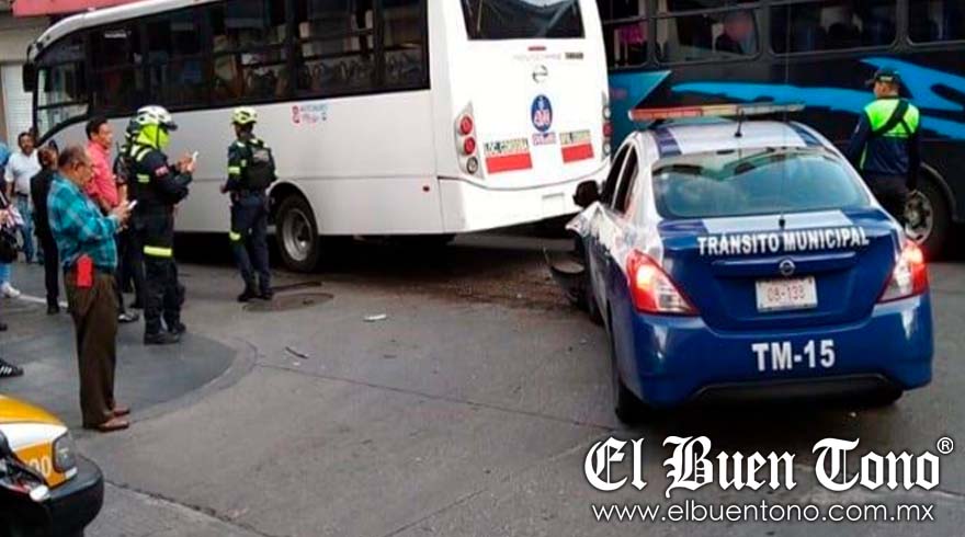 Los hechos se registraron cuando la unidad de Tránsito Municipal TM-15 circulaba por la calle y el autobús de pasaje número económico U-470, lo hacía por la avenida.
