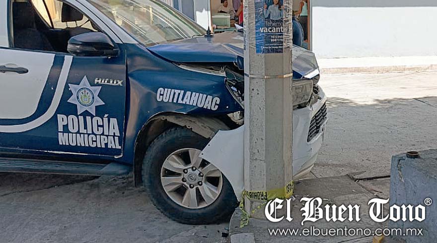 CUITLÁHUAC.- Una patrulla de la Policía Municipal chocó contra una camioneta particular, en el cruce de la avenida 2 y la calle 7, ayer por la mañana.