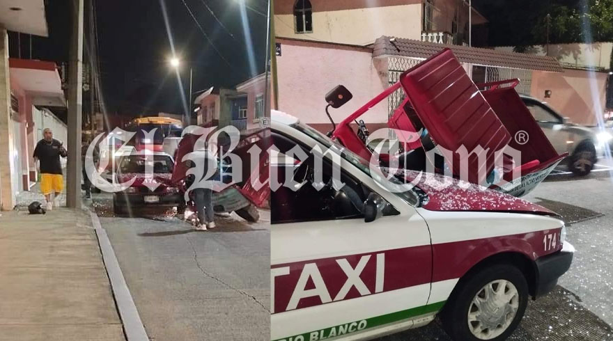 Orizaba. – Un repartidor de agua que conducía una motocicleta, se impactó de frente contra un taxi de Río Blanco, marcado con el número 174, al intentar rebasar en la norte 13, a unos metros del parque la Alameda.