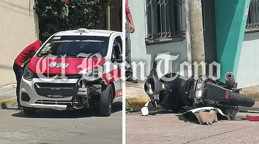 Córdoba. – Movilización de la Cruz Roja y del perito en turno de Tránsito Municipal, fue el resultado luego que una motocicleta fuera impactada por el taxi con el número económico 399 del municipio de Fortín.