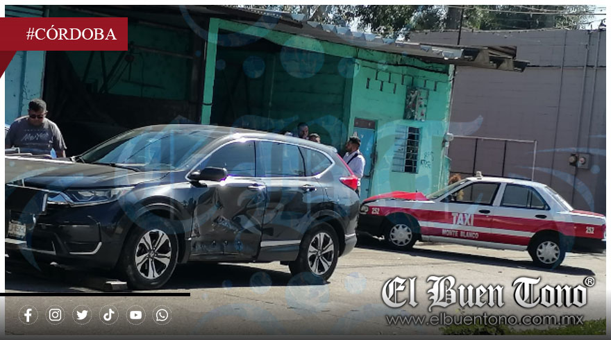 Córdoba, Ver.- El taxi número 22 de la comunidad Monte Blanco, en Fortín, chocó esta mañana contra una camioneta Honda a la altura de la glorieta de la avenida 1 y calle 28.