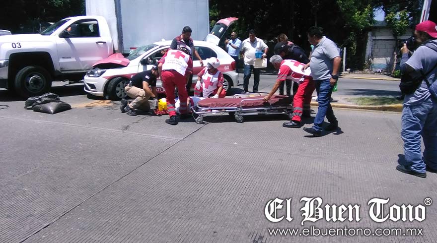 Rosa María “N” recibió atención de paramédicos de la Cruz Roja y del personal de Protección Civil. Fue trasladada a un centro médico debido a las lesiones sufridas en el accidente.