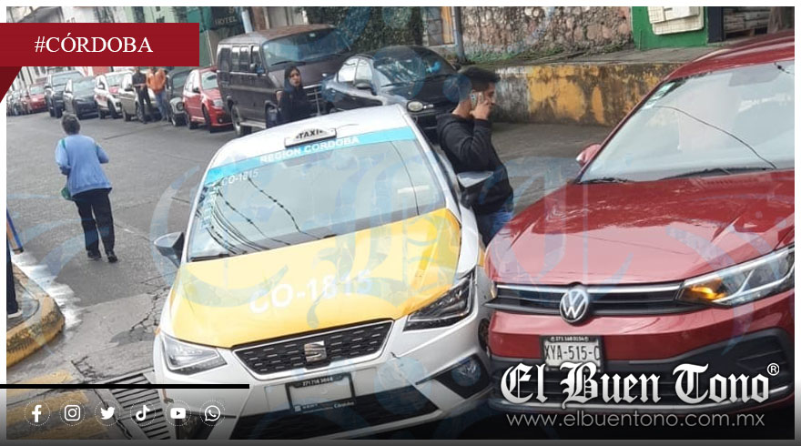Córdoba, Ver.- Sólo daños materiales y el cierre momentáneo de la circulación, dejó un choque registrado esta mañana en la avenida 2 y calle 6, entre el taxi número CO-1815 y un automóvil marca Volkswagen.