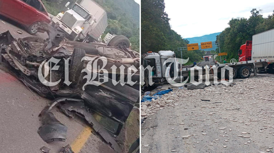 Maltrata, Ver.- Un choque por alcance se registró entre un camión tipo torton con un automóvil compacto, sobre la autopista Puebla-Córdoba a la altura de las Cumbres de Maltrata.