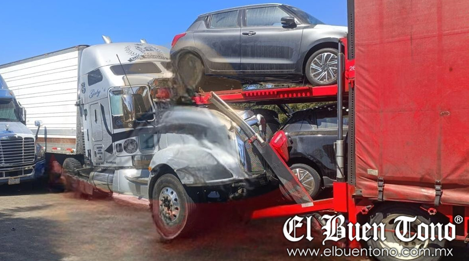 Cuitláhuac, Ver.- Un tractocamión con caja seca chocó contra una nodriza, unidad de transporte de vehículos, durante la tarde de este domingo a la altura del kilómetro 15 de la autopista Córdoba-Veracruz, pasando los baños de la caseta de cobro.