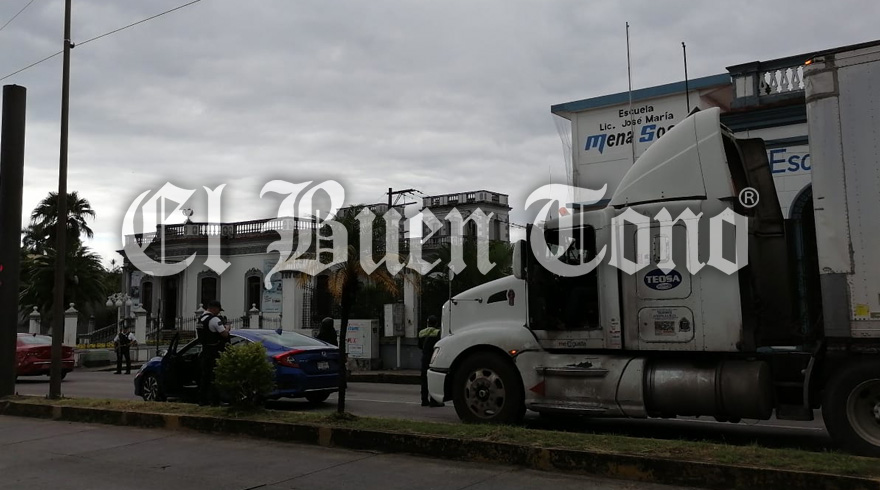 Córdoba.- Un trailer con caja seca chocó contra un automóvil Honda Civic esta tarde en la avenida 11 y calle 13. El accidente se registró minutos después de las 12:00 horas, hora en que este tipo de unidades de carga no pueden circular dentro de la ciudad. Durante el accidente, no hubo reporte de personas lesionadas, pero bien se pudo originar un problema mayor.