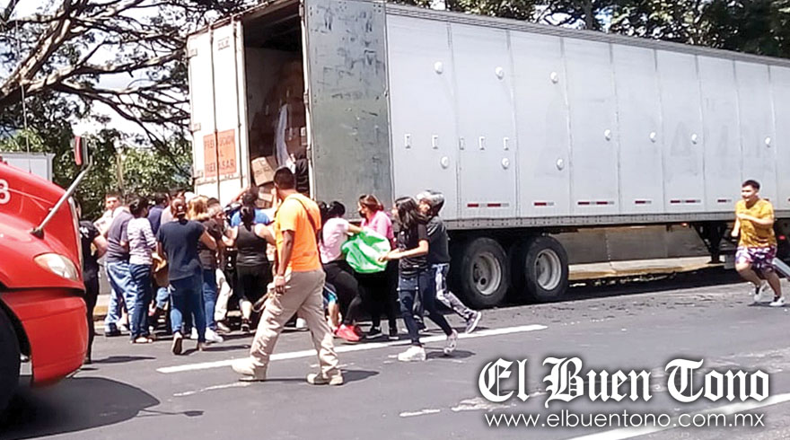Para su mala suerte, elementos de la Policía Municipal y de la SSP y Fuerza Civil, se movilizaron rápidamente al lugar del percance para ahuyentar a los delincuentes y evitar que saquearan completamente la mercancía.