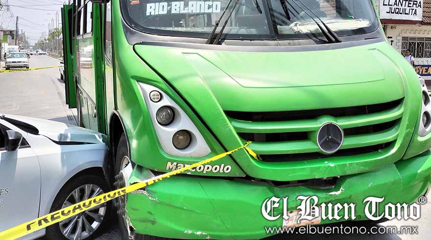 Ciudad Mendoza.- Un aparatoso accidente se registró sobre uno de los carriles del bulevar de la avenida Miguel Hidalgo, luego de que un autobús de transporte urbano de la línea Metropolitanos, embistió a un auto particular que trataba de incorporarse a dicha vialidad.