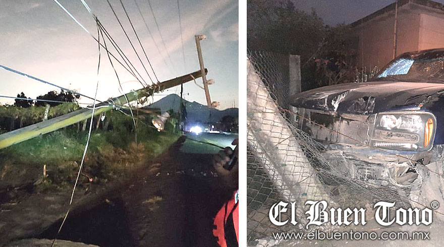Coscomatepec.- Una falla en los frenos provocó que una camioneta particular chocara contra un poste de la Comisión Federal de Electricidad y lo derribara, durante la noche de ayer martes en la carretera estatal de San Nicolás-