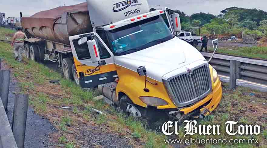 Pero lejos de detener su marcha, el tractocamión acabó volcado dentro de la cuneta central con parte de las pesadas vigas de acero a cuestas, aunque por fortuna el trabajador del volante pudo salir por su propio pie de la cabina. Posteriormente, el hombre fue atendido en el lugar por paramédicos de Capufe, en tanto, elementos de la Guardia Nacional, División Carreteras, realizaron la valoración de los daños que causó el vehículo a la infraestructura