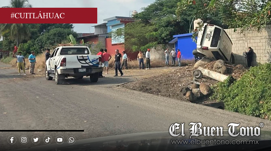 Cuitláhuac.- Un automóvil que invadió el carril contrario, chocó contra un motociclista y terminó volcado a un costado de la carretera federal Córdoba-Veracruz, a la altura de la desviación al centro de Cuitláhuac.