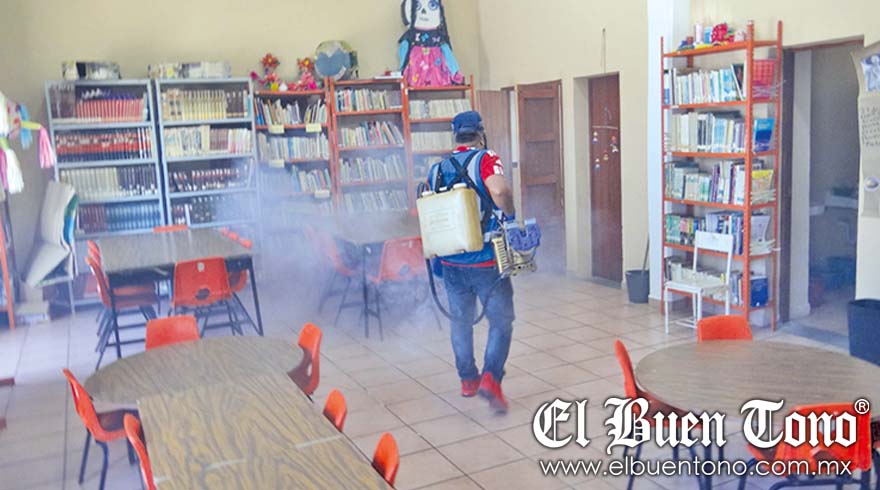 Chocamán.- A fin de prevenir casos de dengue en el municipio, vectores de la Jurisdicción Sanitaria de Córdoba, en coordinación con autoridades municipales, fumigaron el Centro, el Palacio Municipal, edificios públicos, así como la colonia Los Pinos de San José Neria.