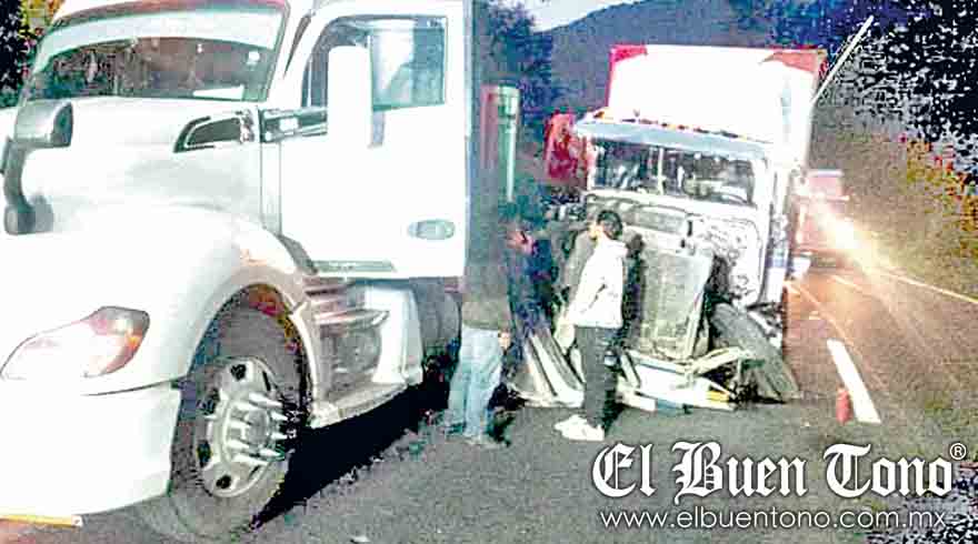 Un tractocamión de cinco ejes, con placas de circulación 633-AM-2 del Servicio Particular y conducido por Gerardo “N”, se impactó por alcance contra un tráiler placas 58-AH-3S y razón social Transportes Caro, cuyo conductor fue identificado como José Guadalupe “N”.