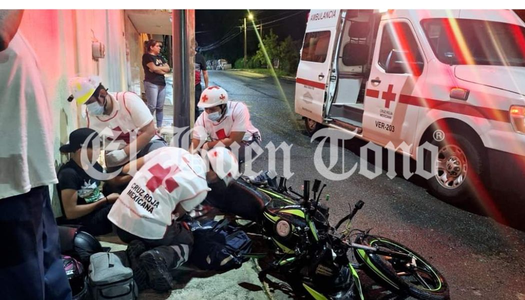 Córdoba.-Un motociclista fue atendido por paramédicos de la Cruz Roja, al chocar contra un taxi marcado con el número CO-139, en el cruce de la avenida 35 y calle 27 de la colonia Paraíso.