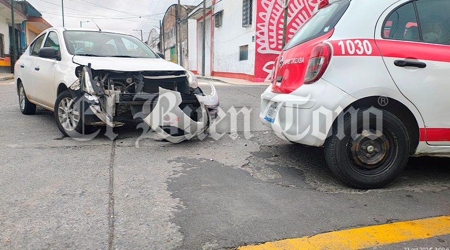 Orizaba, Ver.- Tres personas lesionadas, entre ellas una menor, dejó como saldo el choque lateral entre un automóvil y un taxi la tarde de este miércoles.