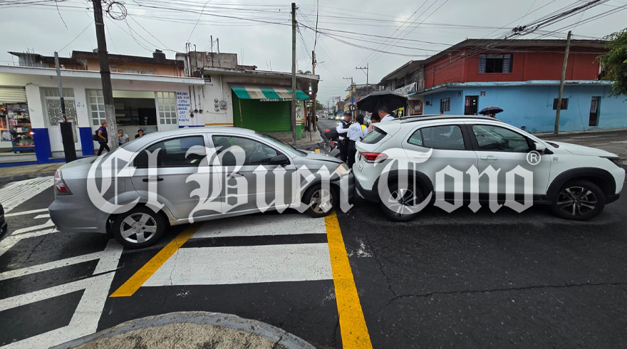 Orizaba, Ver.- Un choque por alcance, se registró entre dos automóviles, debido a que uno de los conductores no guardó la distancia prudente de seguridad entre unidades.