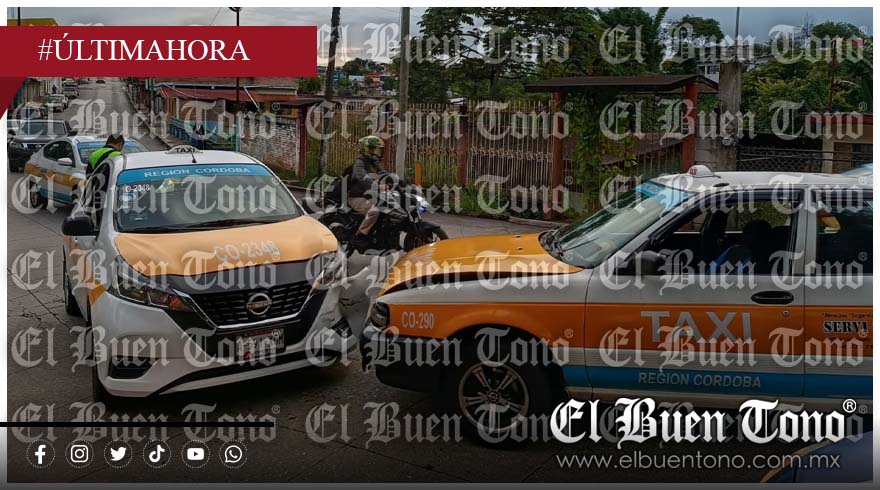 Córdoba, Ver.- La irresponsabilidad de uno de los conductores originó que dos taxis, el CO-2348 y el CO-290, chocaran esta mañana en la curva de la calle 10, entre las avenidas 2 y 4.