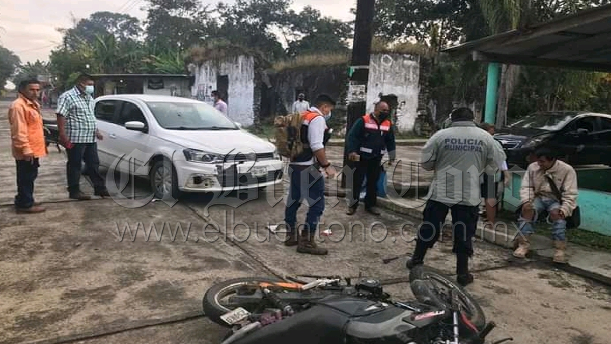 Coetzala.- Un motociclista resultó con algunos golpes en el cuerpo durante la mañana de este viernes, luego de ser impactado por un vehículo Gol en calles de este municipio, lo cual movilizó a elementos de la Policía Municipal y grupos de auxilio que llegaron para dar atención médica, además de que solicitarían la intervención de las autoridades de Tránsito Estatal para tomar conocimiento y poder deslindar alguna responsabilidad, ya que también hubo daños materiales.