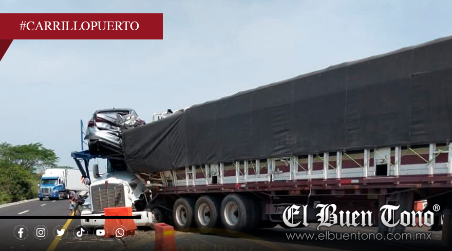 Carrillo Puerto, Ver. — La mañana de este miércoles se registró un choque entre una nodriza y un tráiler tipo jaula sobre la autopista Córdoba-Veracruz, en el tramo Cuitláhuac-Tinajas, a la altura del kilómetro 38, justo en una zona que se encuentra en reparación.