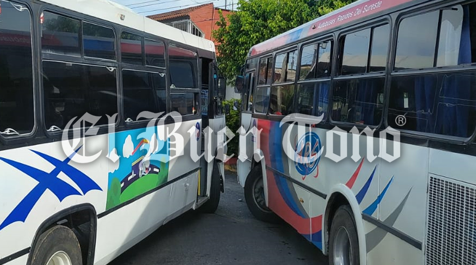 Córdoba.- Dos autobuses, uno de la línea Praderas y otro de Rápidos del Sureste que cubren la ruta Amatlán-Córdoba, chocaron en el cruce de la avenida 9 y calle 37, junto al banco de Bienestar, cuando los choferes jugaban carreritas poniendo en peligro a sus pasajeros que por fortuna resultaron ilesos.
