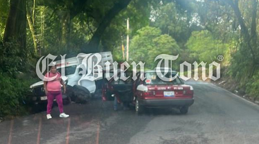 Chocamán.- Una camioneta y un taxi de Fortín marcado con el número 214, chocaron la mañana de este sábado, cuando liberaron un bache en la carretera federal Fortín-Huatusco, a la altura de la barranca de Chocamán.