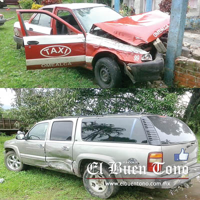 Omealca.- Un sujeto en estado de ebriedad provocó un aparatoso accidente sobre la carretera estatal Tezonapa-Omealca, al dar una vuelta en “U” indebida y ocasionar que un taxi se estrellara contra su camioneta.