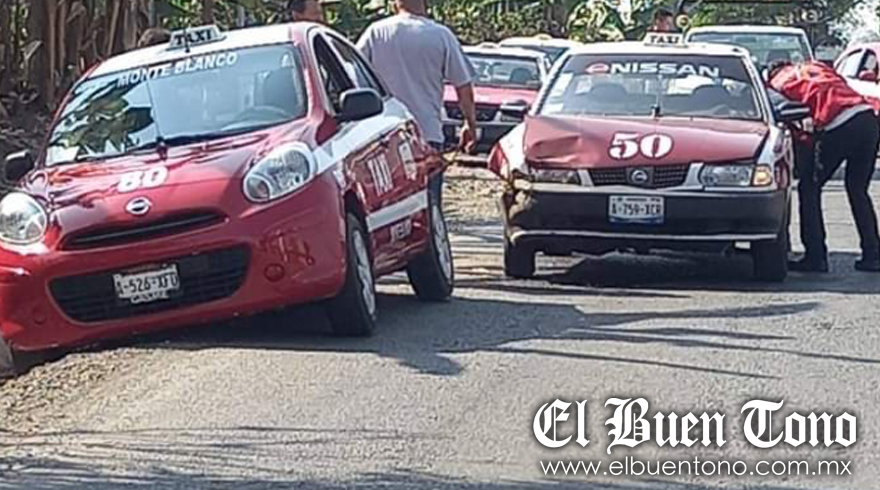 El accidente se registró durante la tarde de ayer, cuando el conductor del taxi marcado con el número 50, un Tsuru, de Monte Blanco, al desplazarse sobre la mencionada carretera, con dirección al centro de Fortín, por no guardar su distancia prudente de circulación, chocó por alcance contra otra unidad de alquiler, tipo March, marcado con el número 80, de la misma localidad.
