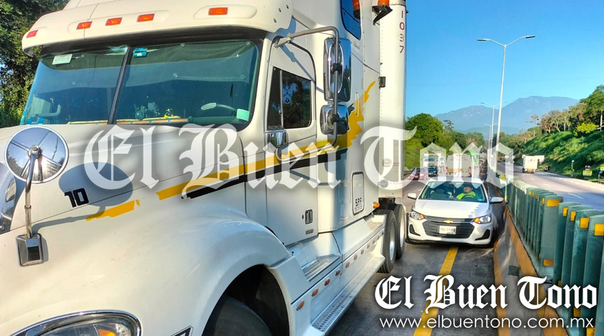 Ixtaczoquitlán.- La mañana de este viernes se registró un aparatoso accidente sobre el carril de descenso de la autopista Puebla-Córdoba, en el que se vieron involucrados un tractocamión y un auto particular.
