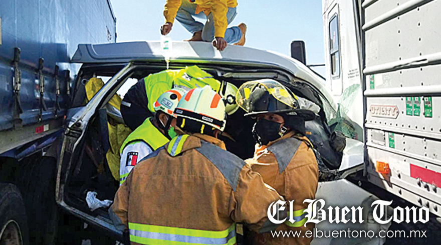 Debido a la colisión entre los tractocamiones, la camioneta quedó en medio de las dos pesadas unidades. Lamentablemente los tripulantes quedaron prensados en la misma. Se trata de un hombre y una mujer que hasta el cierre de esta sección no han sido identificados.